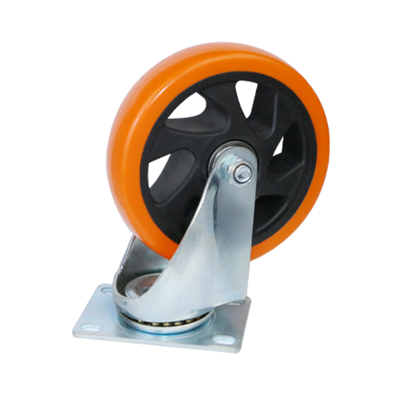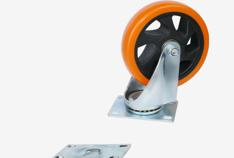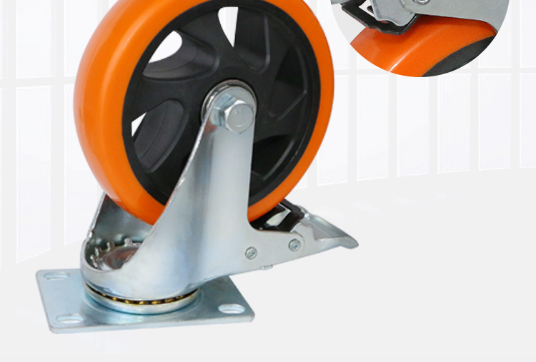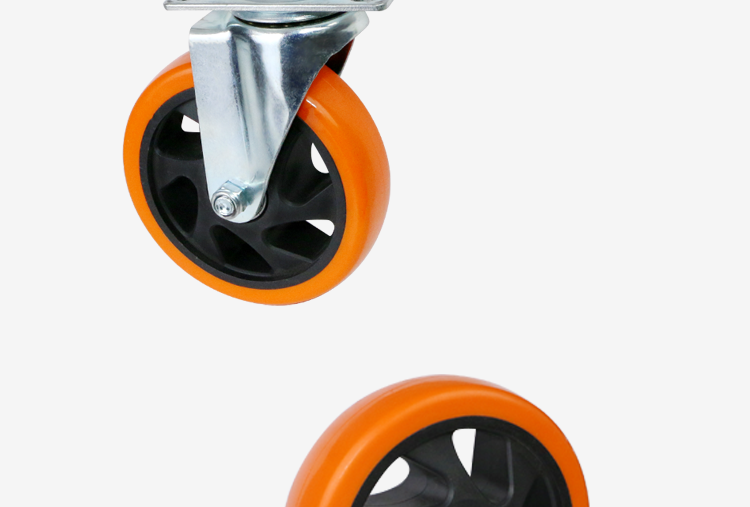 中型橙色通花万向轮5寸平板车手拉车工厂周转静音工业脚轮厂家