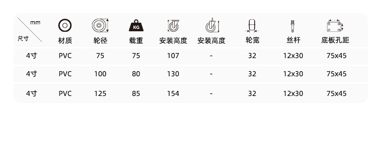 轻型系列-镀锌白PP脚轮